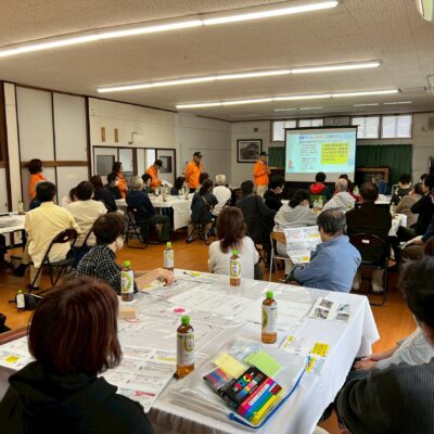 1年生 97名 防災マップ発表 白い小箱 《連合自治会・地域マネージャー 日本非常食推進機構》